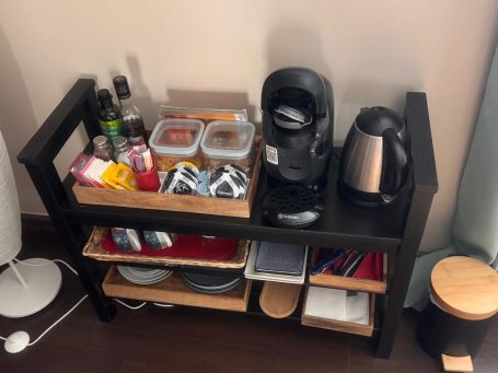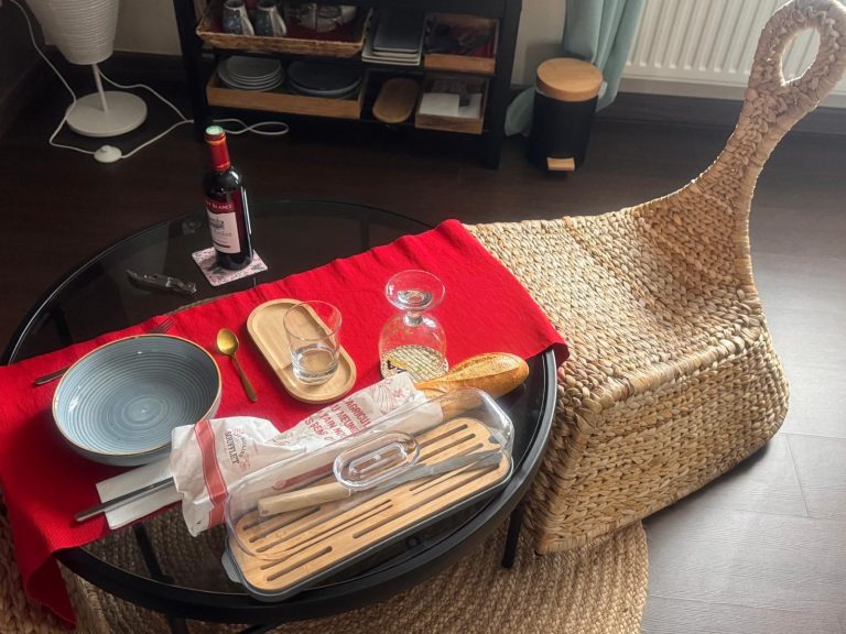 Dorine heeft samen met dochter alles uitgelegd. In mijn kamer is het tafeltje al gedekt, er staat warm eten in de koelkast dat ik in de magnetron moet opwarmen, drinken in overvloed, bier, water, jus’dorange, Koffie, Thee, fruit, chips en wat niet meer.