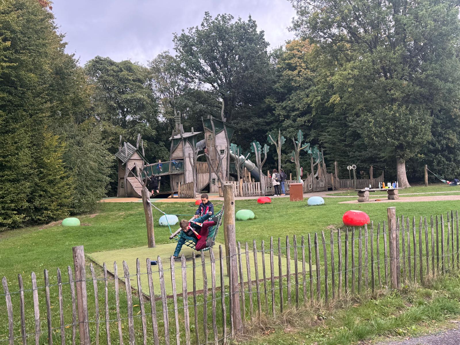 Dan sta je, nog wel in het bos, ineens op een brede weg met aan het begin een zeer grote parkeerplaats. De route gaat nog verder omhoog en kom ik aan in het grote recreatiepark d’ Olhain. De naam komt van een kasteel dat in de buurt staat.